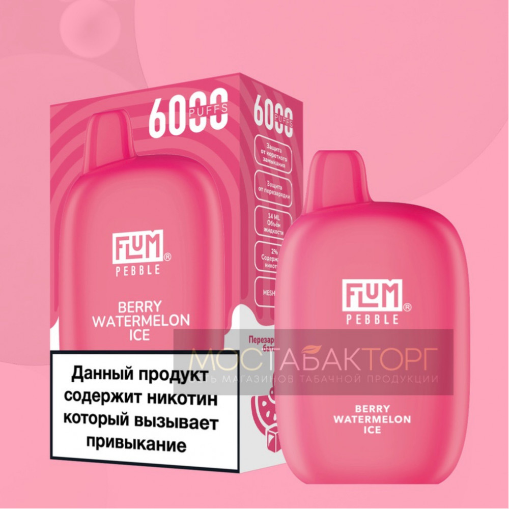Электронная сигарета FLUM Pebble Ягоды Арбуз Лёд на 6000 затяжек
