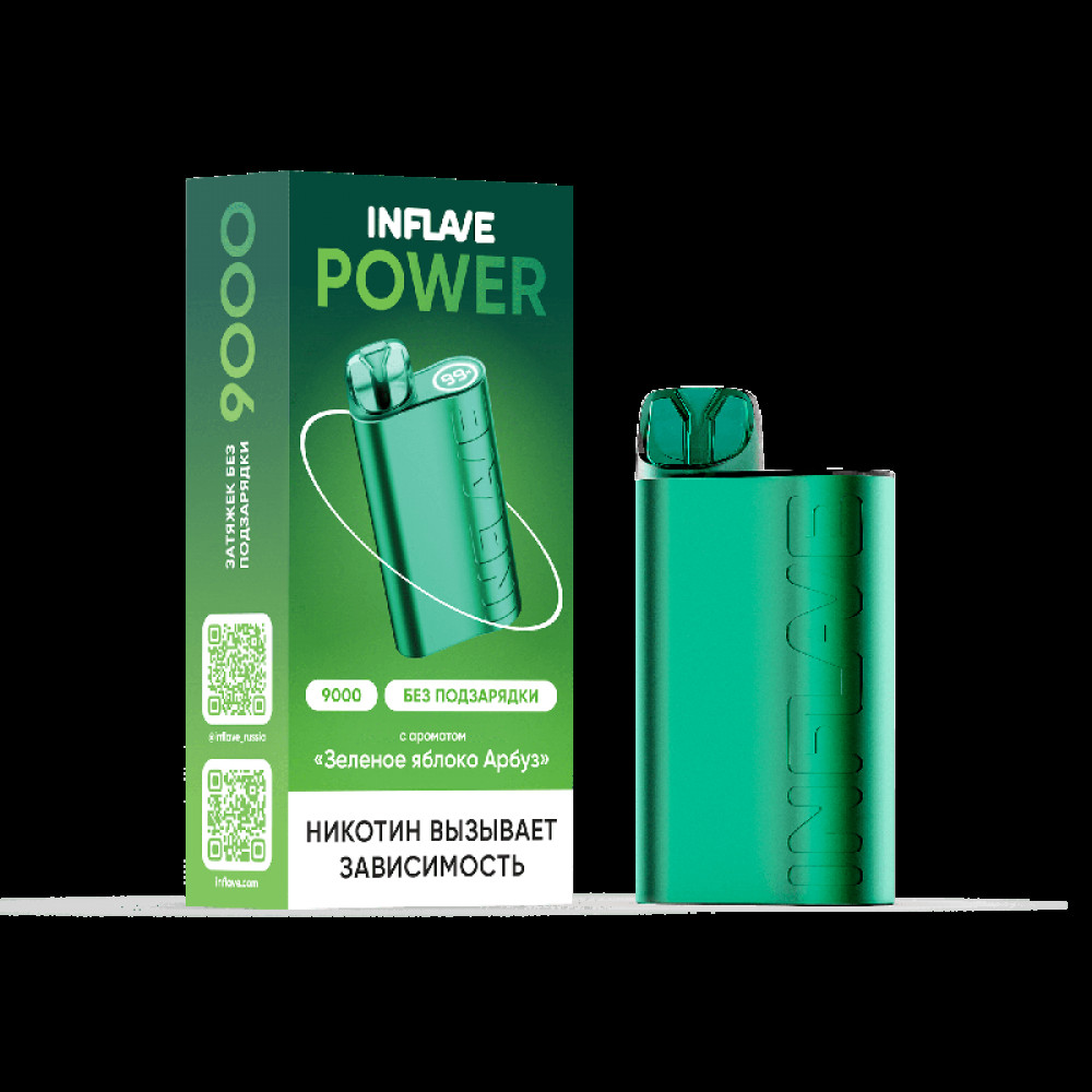 Электронная сигарета INFLAVE POWER 9000 затяжек Зеленое Яблоко Арбуз - купить в Камышлове